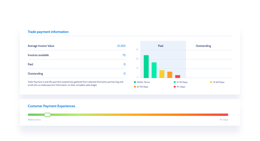 Otra información útil proviene de los datos de pagos comerciales. Esto te permite conocer el comportamiento de pago de tus socios y prospectos, y entender la probabilidad de que liquiden sus facturas en ciertos periodos. El número de días que una empresa suele necesitar para pagar sus facturas te ayudará a identificar prospectos más rápidos en sus pagos. De igual manera, si observas una ralentización en la capacidad de un cliente actual para cumplir con sus obligaciones, puedes reconsiderar o renegociar las entregas, evitando que tu propia situación financiera se vea afectada.